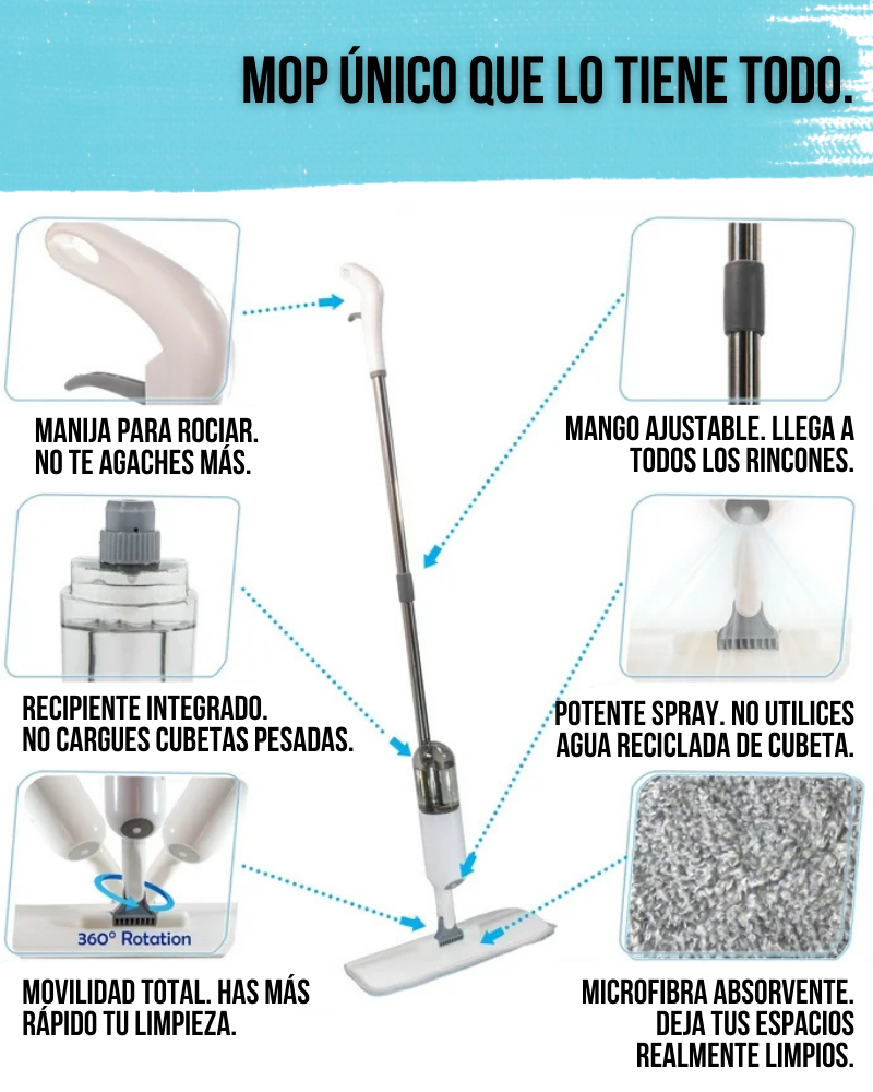 Con el Mop Spray tendrás limpieza real porque: